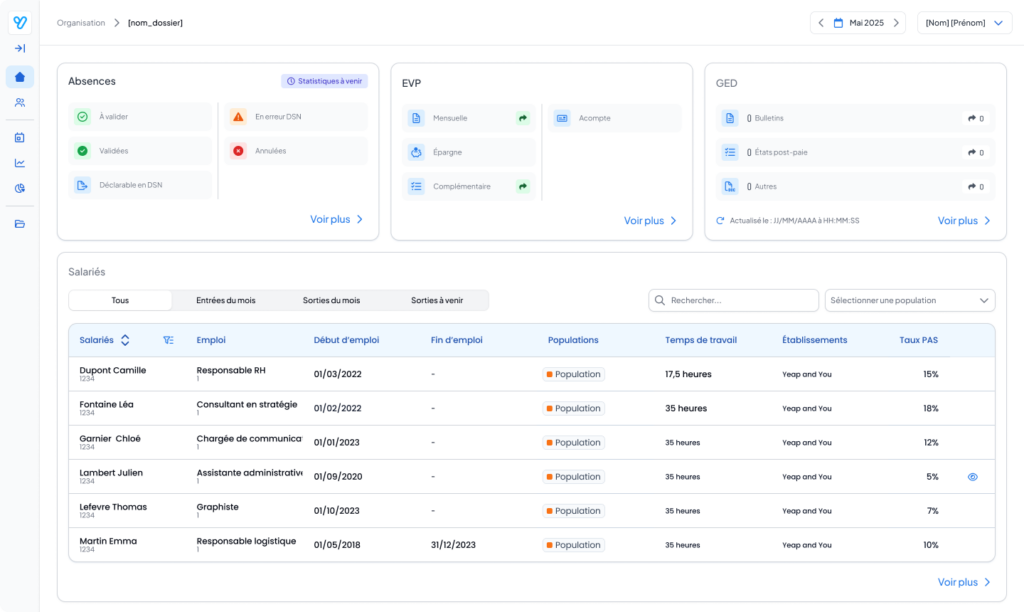 Avec le portail entreprise YeapPaye, la paie devient plus fluide, plus collaborative et surtout plus sereine. Moins d’emails, moins d’erreurs, plus d’efficacité.